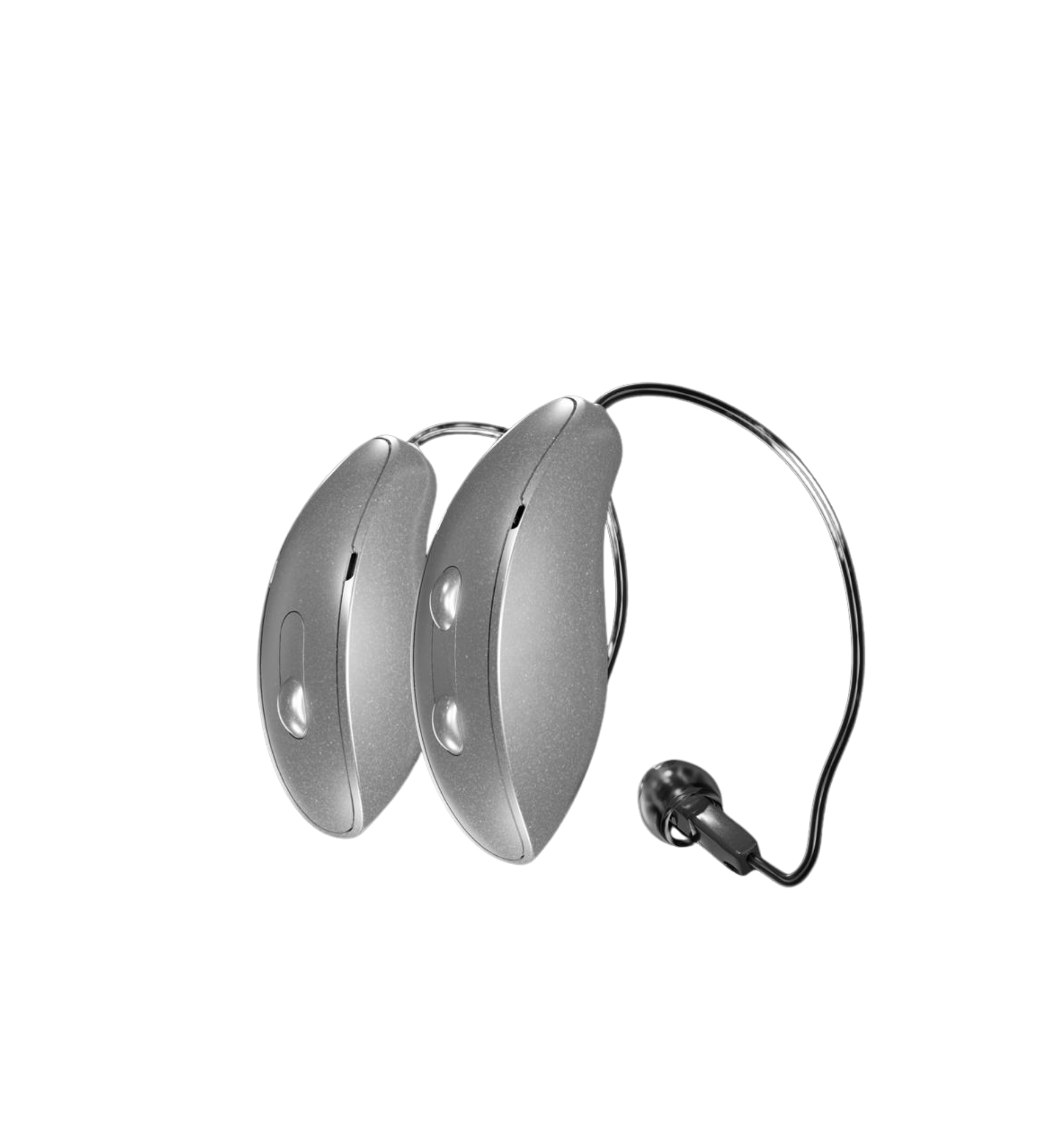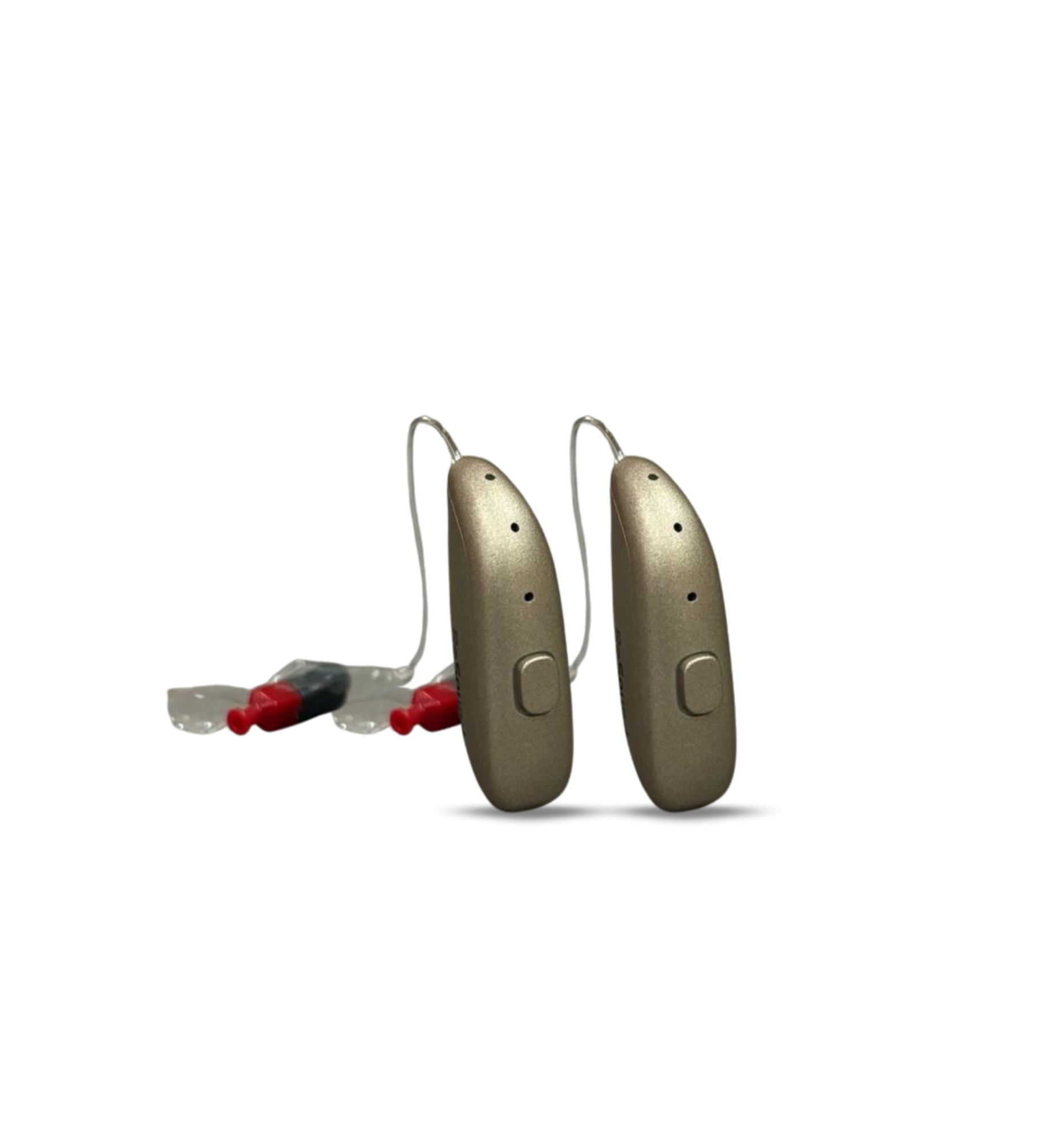 Hearing aids include user-friendly controls for volume and program settings.
